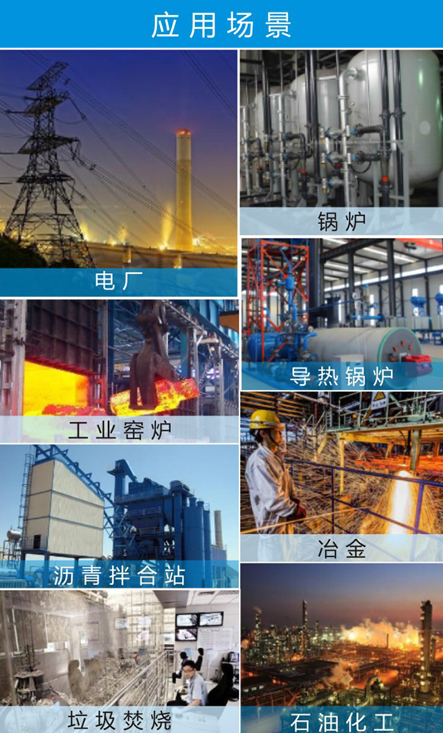 4.应用于各种热能设备上,如沥青加热导热炉,食品烤箱,空调机制热器,雪地清扫机、垃圾焚烧炉,热风发生炉以及各种通用锅炉。